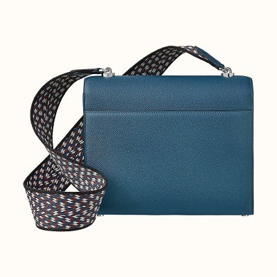 HERMES/爱马仕蓝色小牛皮翻盖锁代单肩包 H079088CKAF